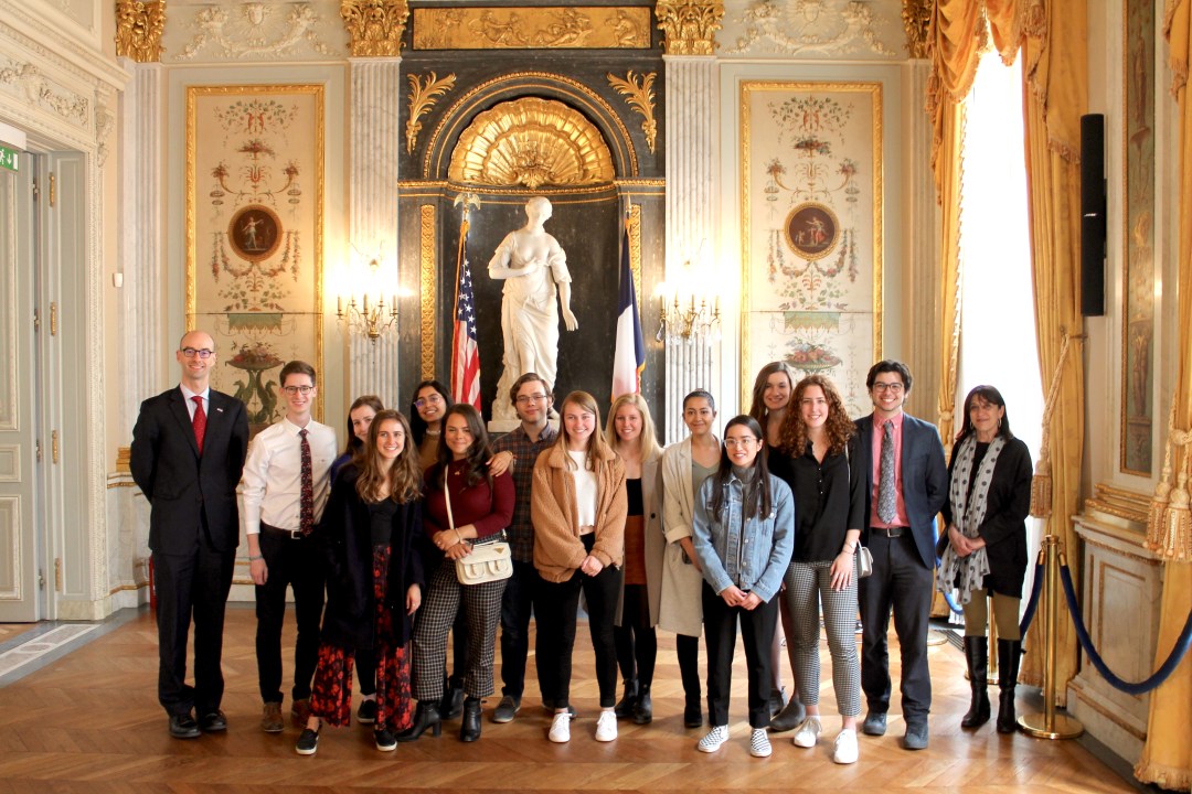 A few weeks back, a group of Hamilton in France students went to visit the magnificent US Embassy's George C. Marshall Center, also known as the Hôtel de Talleyrand, with Consul for Western France and Hamilton College alum James Du Vernay '03. Mary Beringause '20 was there, and she wrote an article about the experience. … Continue reading Tour Of U.S. Embassy’s George C. Marshall Center With Du Vernay ’03